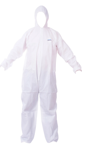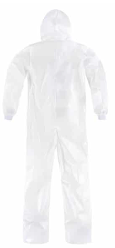 Overol SMS laminado (TYVEK) 60-65 grs, cierre vertical parte frontal, elástico en muñecas y capucha, hidrofóbica respirable blanco, repelente a fluidos 99%, repelente a partículas 90%, resistente a rasgaduras y elongación, antiderrapante, hipoalergénico, antiestático, anti-moho, suave al tacto, desechable, recubrimiento de poliuretano
